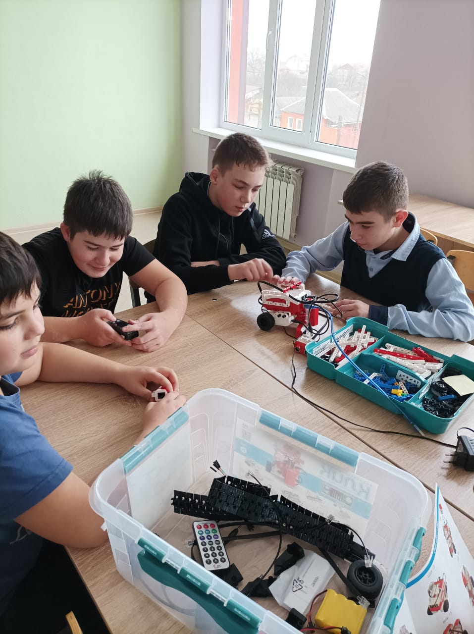 06.12.2024. Для учащихся 5-го класса в "Точке роста" провели мероприятие «Возможности робототехнического образовательного набора «Клик».  Набор позволяет проводить эксперименты по предмету физика, создавать и программировать собираемые модели из компонентов, входящих в его состав, рабочие модели мобильных и стационарных робототехнических устройств с автоматизированным управлением, в том числе на колёсном и гусеничном ходу. В практической части мероприятия ребята по инструкции собрали модель робота. Следующим этапом работы будет программирование созданной модели.