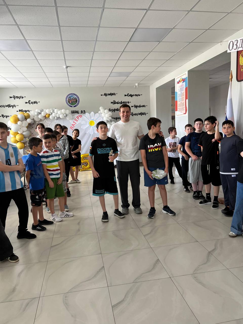 🤼Тренировочную разминку с учащимися провёл мастер спорта по боксу Давид Толасов.