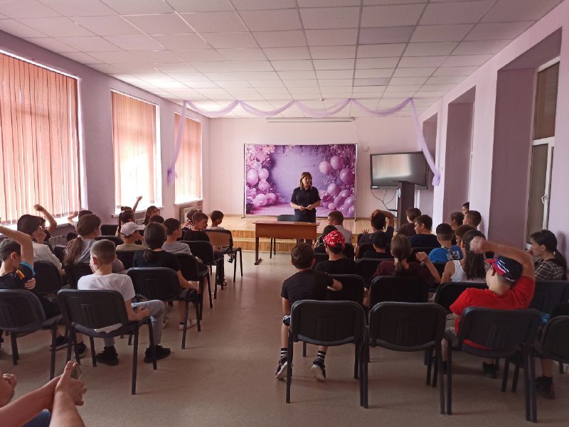 05.06.2025. "Спички детям не игрушка" - с этих слов майор полиции Светлана Кибизова начала свою речь перед лагерной сменой. Светлана Агубеевна затронула и правила дорожной безопасности, правила поведения пешеходов, как обращаться с бездомными животными, как вести себя на велотранспорте. Младший лейтенант полиции Лаура Уруймагова поведала о безопасности при общении в сети интернет. Дети слушали внимательно, по школьному с поднятием руки отвечали на вопросы инспекторов.