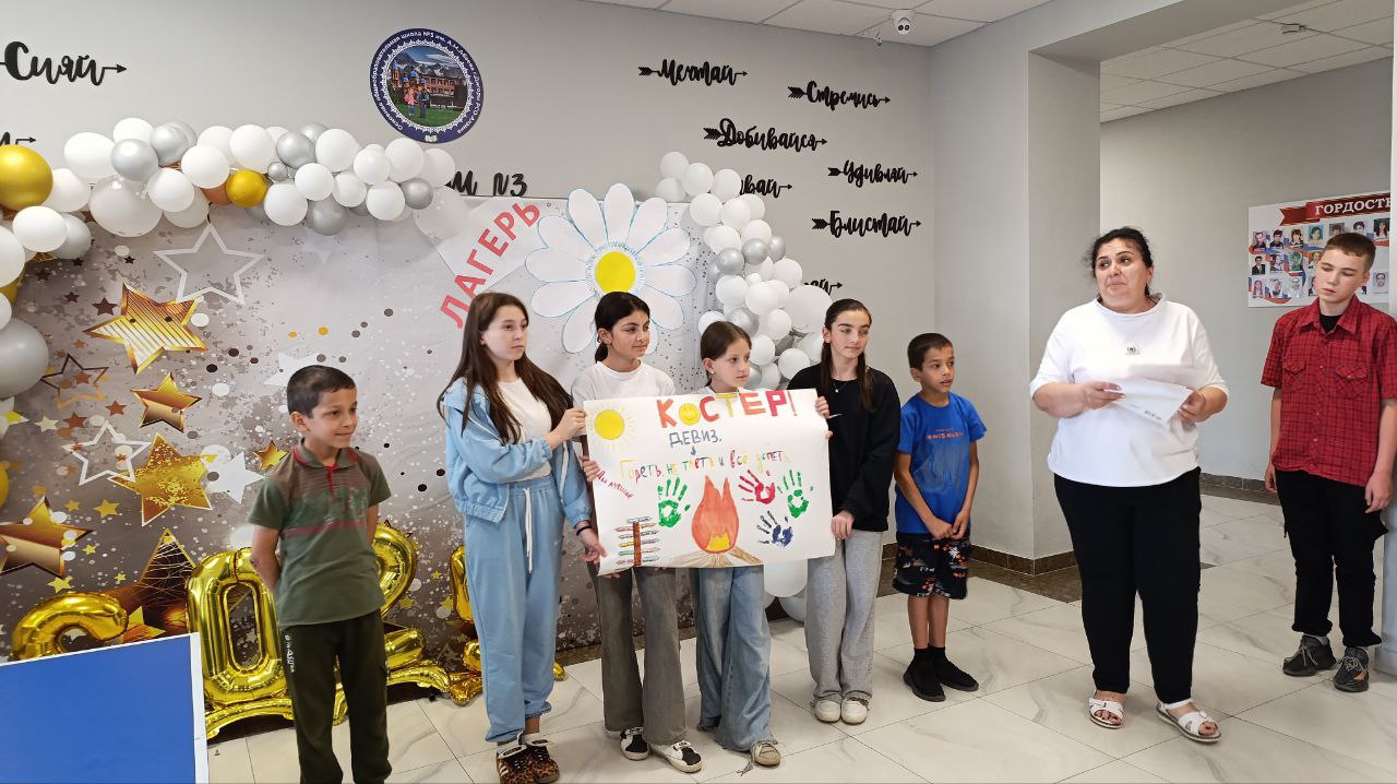 02.07.2025. Сегодня в нашей школе прошло мероприятие, посвящённое закрытию лагерной смены. Ведущие Анна и София тепло поприветствовали воспитанников, воспитателей и весь персонал лагеря. Детям задавали вопросы, что же им больше запомнилось пребывая в лагере? Дети отвечали охотно, выбрав спортзал и столовую. Далее они подарили танцы и песни. Начальнику лагеря Залине Гуевой было предоставлено слово она пожелала детям побольше позитива и ярких моментов продолжения летних каникул. Директор школы Георгий Каркусов вручил грамоты работникам, которые ежедневно трудились на благо успешной работы лагеря, а это:
