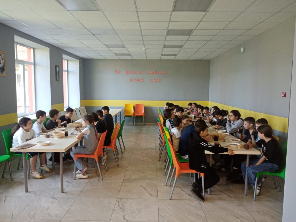 Утро началось с традиционной весёлой зарядки под музыку, дальше ребят ждал приготовленный нашими поварами вкусный завтрак -- давший силы, бодрости на целый день.
