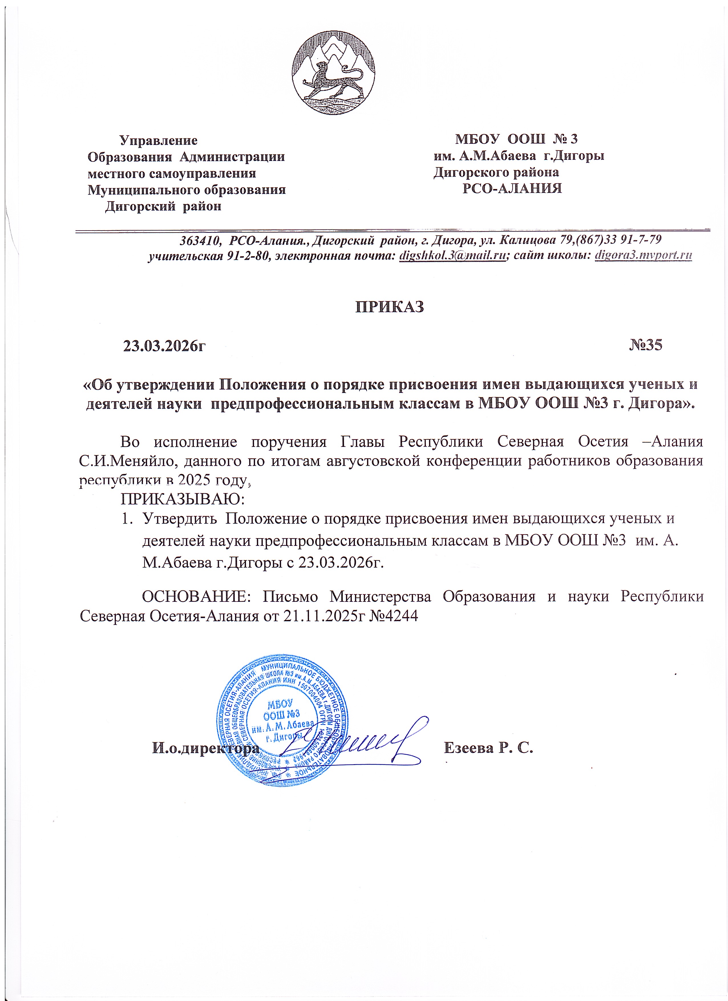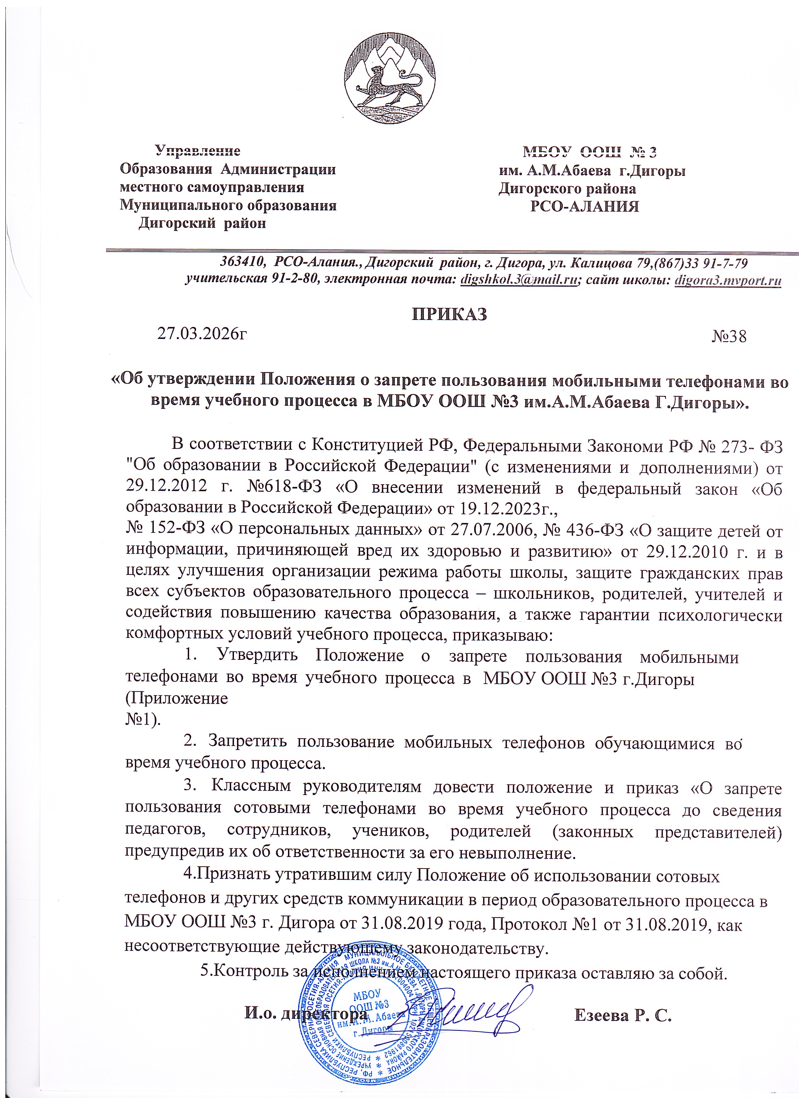 3.Приказ Министерства образования и науки РСО - Алания О незаконных сборах денежных средств.