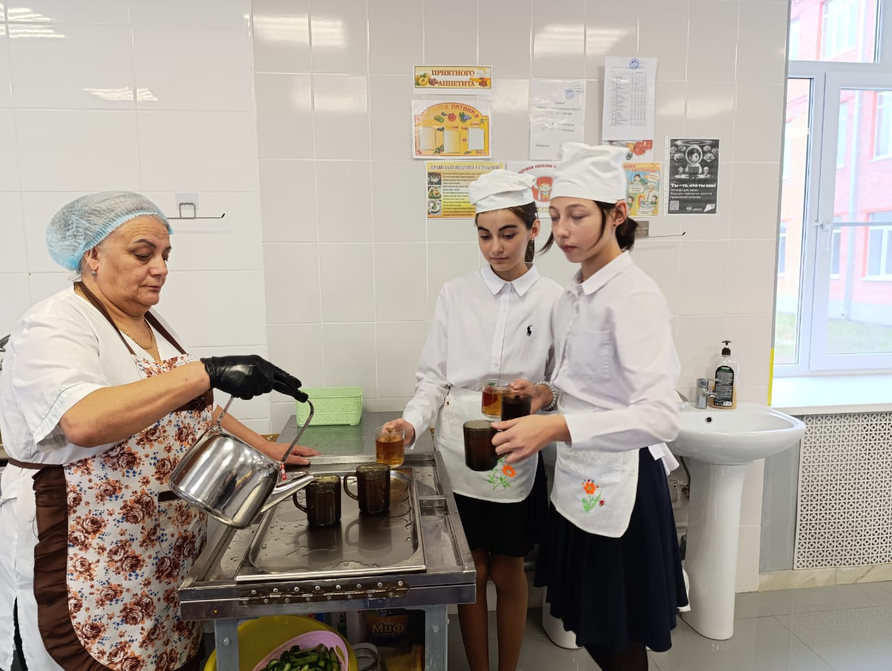 Сюрпризом для ребят стало то, что их мамы вместе с ними пробовали на вкус школьные блюда и тот самый вкусный школьный чай.