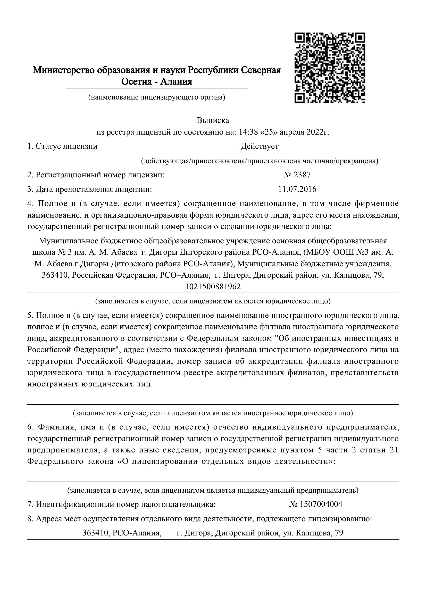 Место нахождения Школы: Российская Федерация, РСО-Алания, г.Дигора, Дигорский район,  ул. Калицова 79