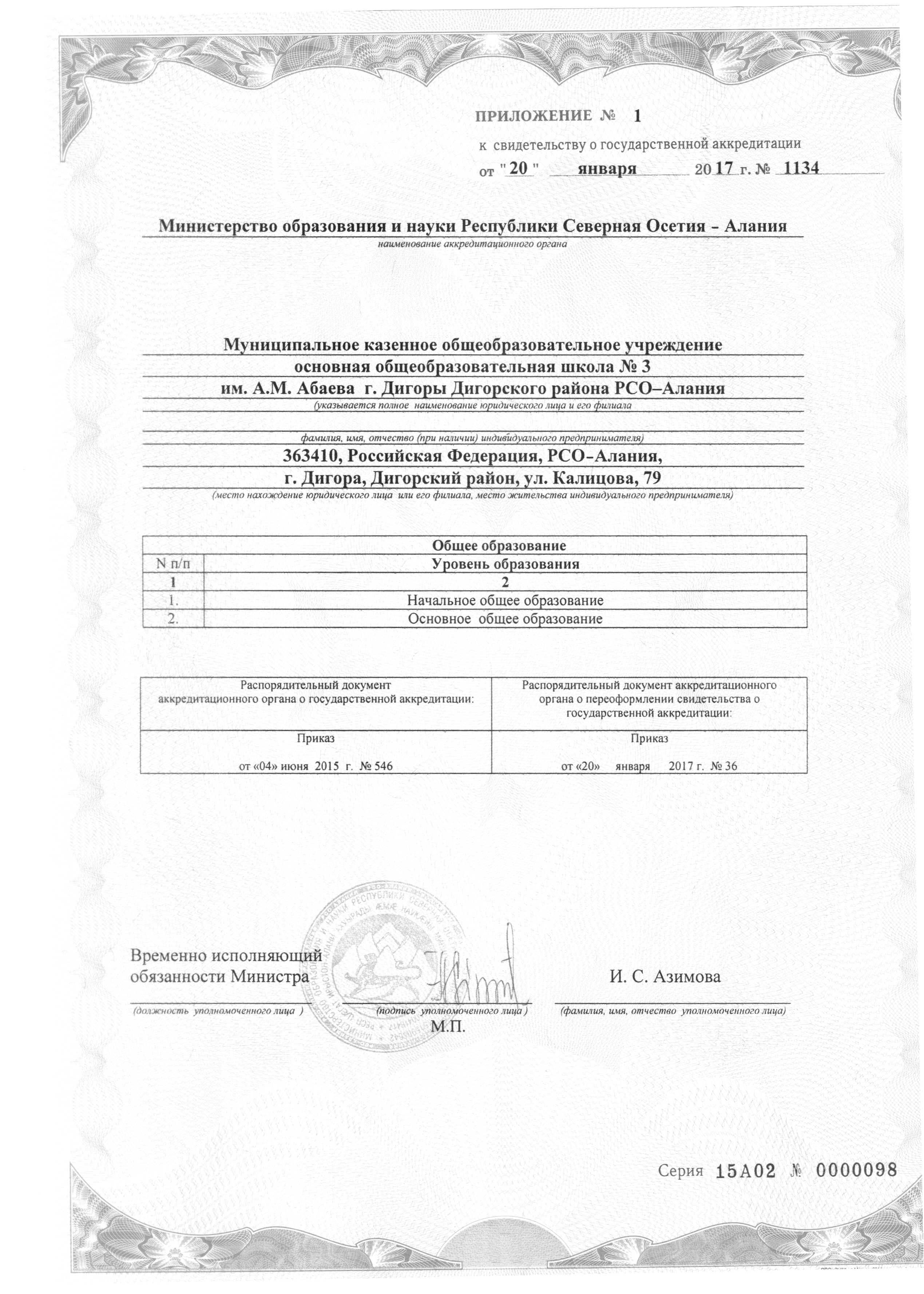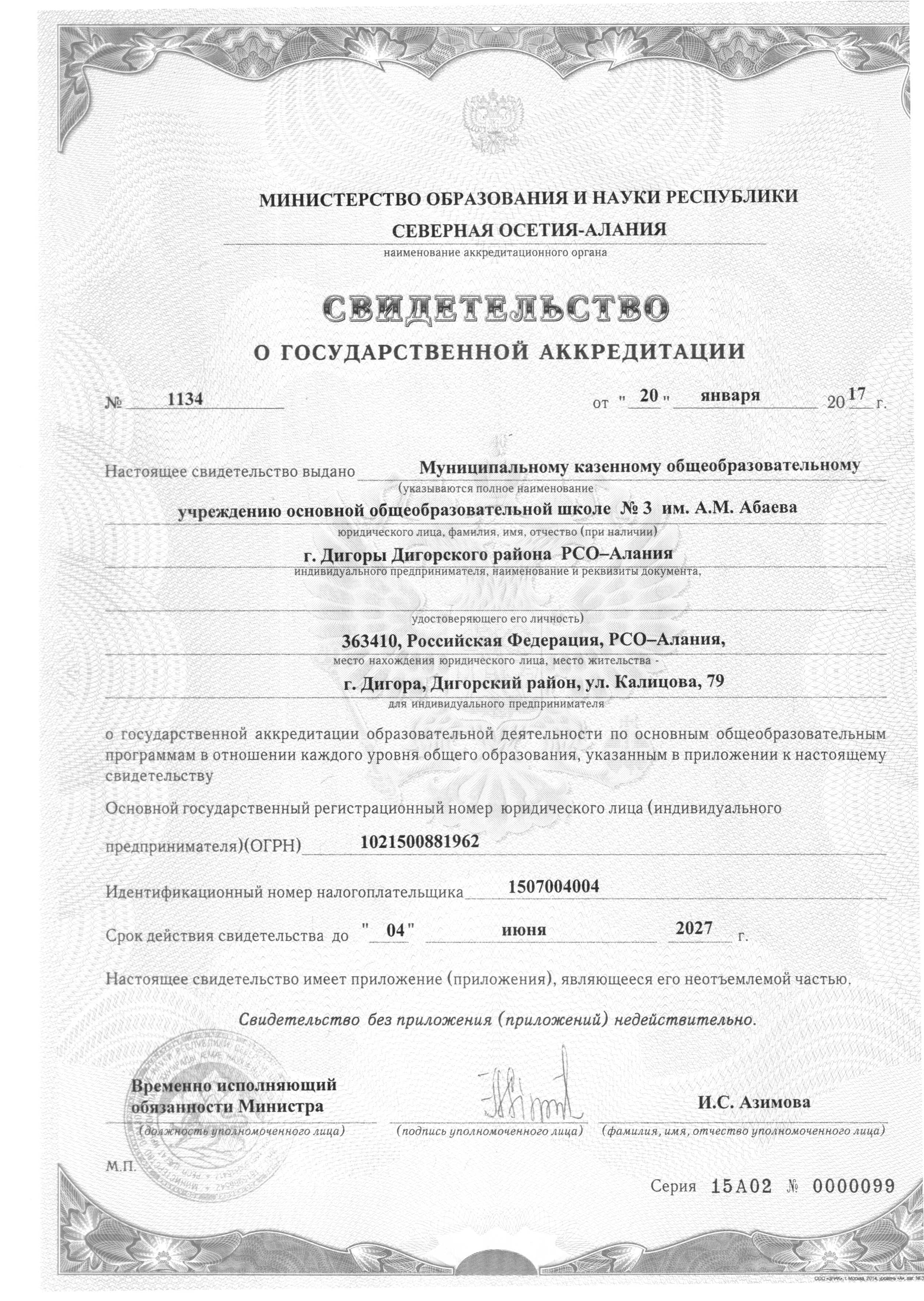 Свидетельство о государственной аккредитации: